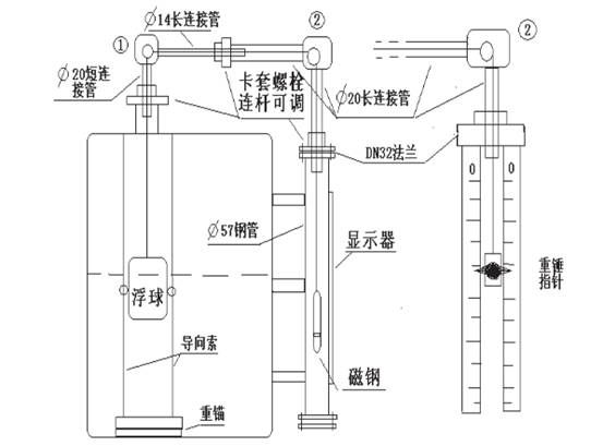 液位計是由浮子、牽引索、導向滑輪、重錘指針、顯示標尺或磁性翻板等五部分組成。