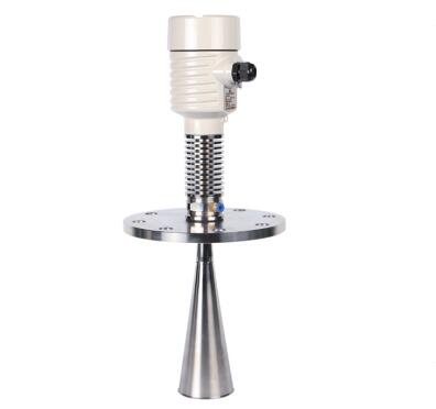SKD54A高溫喇叭天線雷達物位計 SKD54A高溫喇叭天線雷達物位計傳感器是雷達式物位測量儀表測量距離最大35米,可以用于存儲罐、中間緩沖罐或過程容器的物位測量,輸出4~20mA疊加HART信號。 輸入 高溫喇叭天線雷達物位計天線接收反射的微波脈沖并將其傳輸給電子線路,微處理器對此信號進行處理,識別出微脈沖在物料表面所產生的回波。正確的回波信號識別由智能軟件完成,精度可達毫米級。距離物料表面的距離D與脈沖的時間行程T成正比:D=C×T/2(其中C為光速) 因空罐的距離E已知,則物位L為:L=E-D 輸出 通過輸入空罐高度E(=零點),滿罐高度F(=滿量程)及一些應用參數來設定,應用參數將自動使儀表適應測量環境。對應于4~20mA輸出。 高溫喇叭天線雷達物位計參數 應 用:適用于高爐料位,較厚罐頂的儲罐和安裝短管較高的工況測量 測量范圍:35米 過程連接:萬向法蘭 介質溫度:-40~500℃ 過程壓力:常壓 精 度:±15mm 頻率范圍:6GHz 防爆等級:Exb IIBT4 Gb 防護等級:IP67 信號輸出:4~20mA/HART(兩線) SKD54A高溫喇叭天線雷達物位計外型尺寸圖 ![]() SKD54A高溫喇叭天線雷達物位計安裝圖 ![]() SKD54A高溫喇叭天線雷達物位計選型