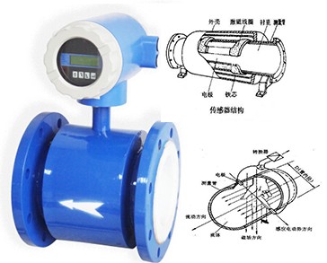在結構上,電磁流量計由電磁流量傳感器和轉換器兩部分組成。傳感器安裝在工業過程管道上,它的作用是將流進管道內的液體體積流量值線性地變換成感生電勢信號,并通過傳輸線將此信號送到轉換器。轉換器安裝在離傳感器不太遠的地方,它將傳感器送來的流量信號進行放大,并轉換成流量信號成正比的標準電信號輸出,以進行顯示,累積和調節控制。