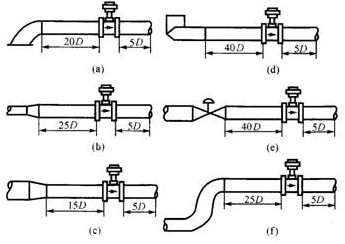 - 為了確保儀表正常、準確運行,傳感器安裝點的上下游必須有一定的直管道,以調整流場。