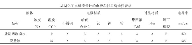電磁流量計口徑選擇不一定與管徑相同,應視流量和流速而定。但作為鹽湖化工原料及中間料液具有粘度大,流速較低(一般在2.0~4.0m/s)的特性,電磁流量計用在這樣的管道上,傳感器口徑與管徑相同即可。如流速低于1.0m/s時,可以選擇適當流速口徑的電磁流量計,保證測量精度相對減少投資。