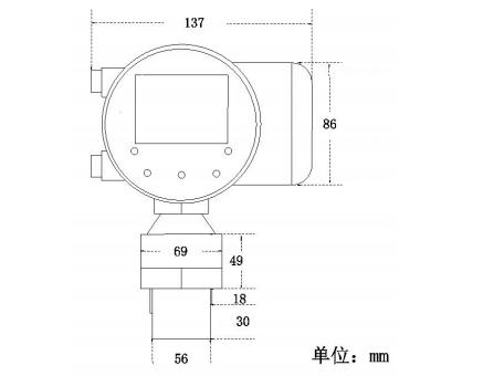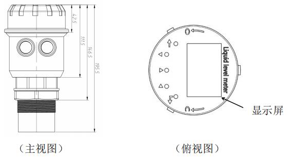 分體式由顯示儀表(二次儀表)和超聲波傳感器(一次表)兩部分組成,結(jié)構(gòu)如下(外觀尺寸見6.1.1):