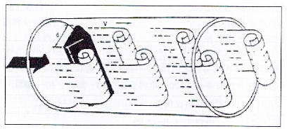 在蒸汽流體中設(shè)置三角柱型旋渦發(fā)生體,則從旋渦發(fā)生體兩側(cè)交替地產(chǎn)生有規(guī)則的旋渦,這種旋渦稱為卡門旋渦,如右圖所示,旋渦列在旋渦發(fā)生體下游非對(duì)稱地排列。