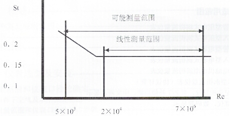 由上式可見,VSF輸出的脈沖頻率信號(hào)不受流體物性和組分變化的影響,即儀表系數(shù)在一定雷諾數(shù)范圍內(nèi)僅與旋渦發(fā)生體及管道的形狀尺寸等有關(guān)。但是作為流量計(jì)在物料平衡及能源計(jì)量中需檢測質(zhì)量流量,這時(shí)流量計(jì)的輸出信號(hào)應(yīng)同時(shí)監(jiān)測體積流量和流體密度,流體物性和組分對(duì)流量計(jì)量還是有直接影響的。