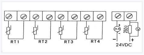 指示儀表、記錄儀表,調節器等儀表能夠與電源串聯在輸出回路,輸出電流正比于溫度的變化,但獨立于電源的變化,其現場應用接線如下圖所示: