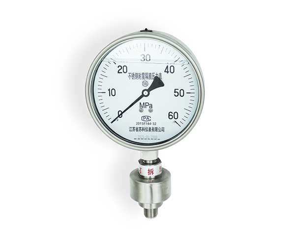 YM系列隔膜耐震壓力表適用于測量具腐蝕性、高粘度、易結晶、易凝固,溫度較高的液體、氣體或顆粒狀固體介質的壓力以及必須避免測量介質直接進入隔膜耐震壓力表和防止沉淀物積累且易清洗的場合。隔膜耐震壓力表主要用于石油、化工、化纖、染化、制藥、制堿食品等工業部門。 |