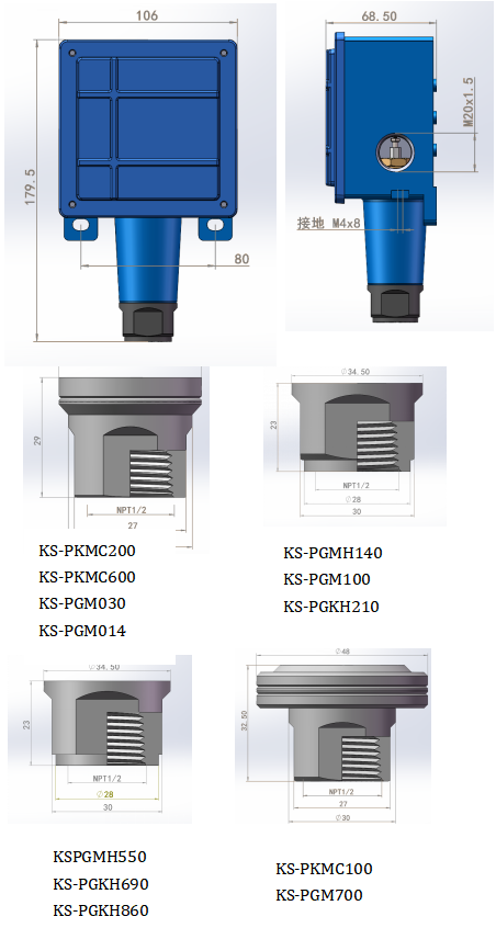 KS-VKM系列:丁腈橡膠及1/2NPTF壓力接口鋁合金材質(其他接口和材質可定制)
