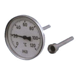 例A:萬向型雙金屬溫度計,測溫范圍0-400℃,熱安裝套管TH01F,插入長300mm,WSS-83TH01F,0-400℃,L=300 |